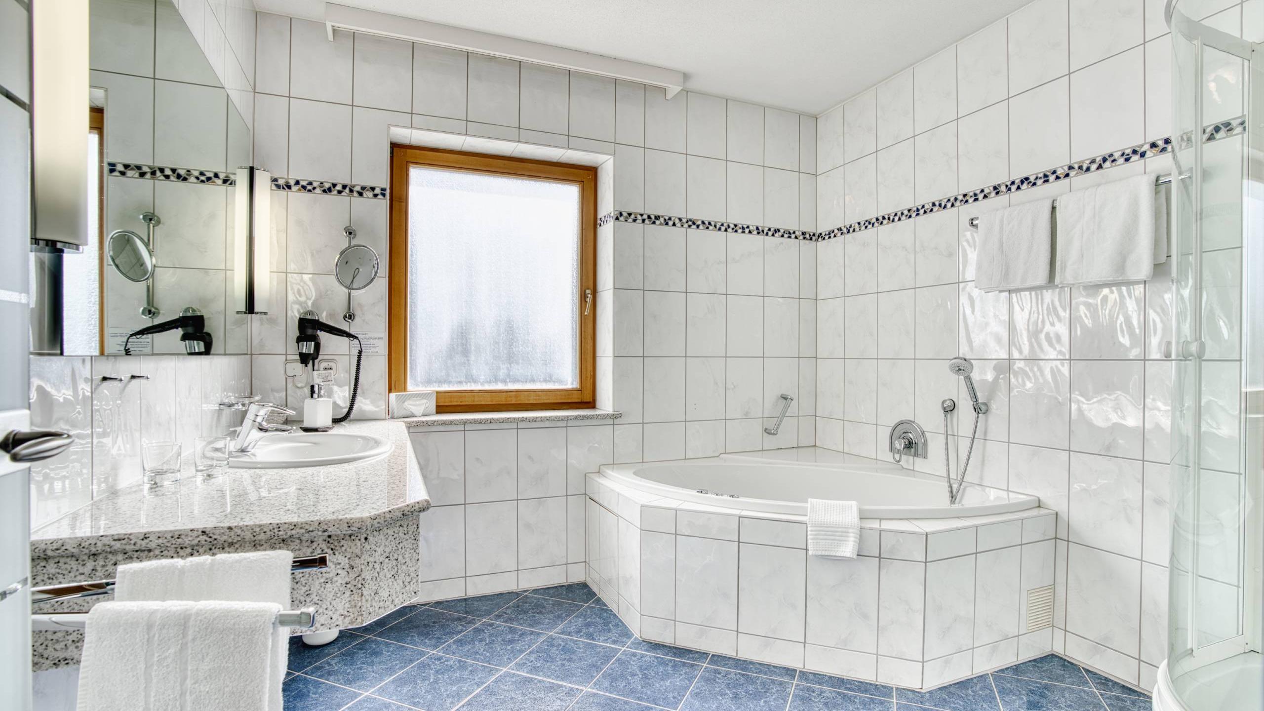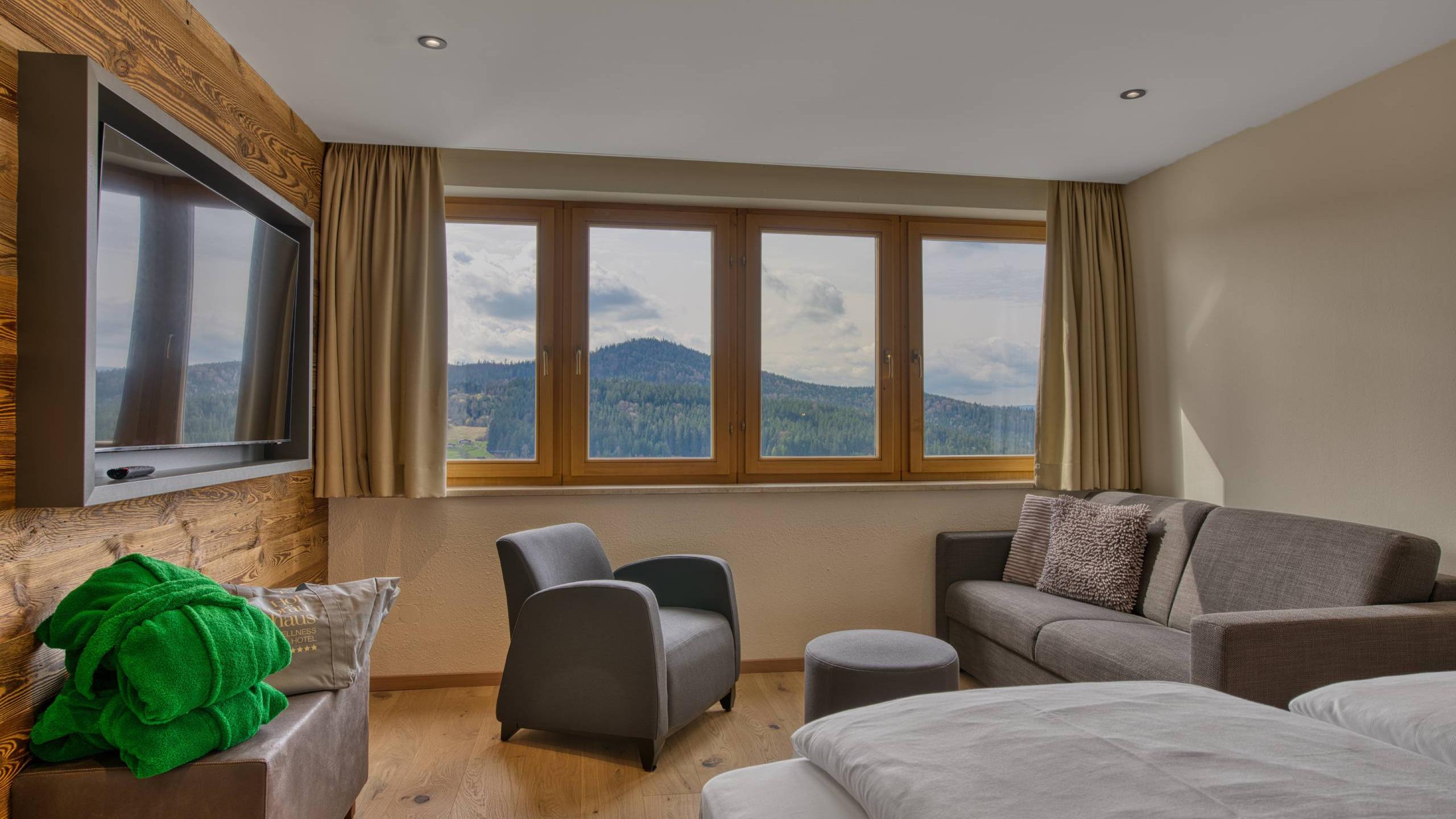 For a spa holiday in a class of its own. In our elegant suite with a separate living room, sunny south-facing balcony, and private whirlpool, you can really indulge yourself. The suite is fully equipped with a bathroom with shower and separate toilet, hairdryer, safe, minibar, telephone, and TV with radio.